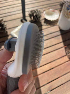 A built-in release button retracts the bristles and pushes collected hair off the brush so you can drop it in the trash without touching fur. It saves time and keeps hands clean.